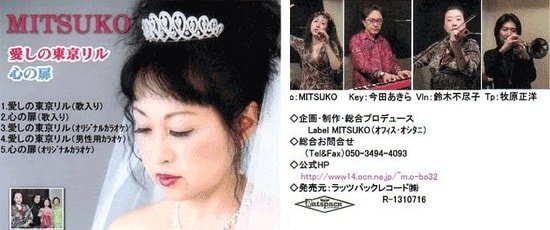 Singer Song Writer:MITSUKO■名前 :歌手名:M ITSUKO,作詞・作曲名:押谷光子■J-POP~JAZZまで幅広いジャンルを歌いこなす、滋賀県長浜市出身のVocalist。